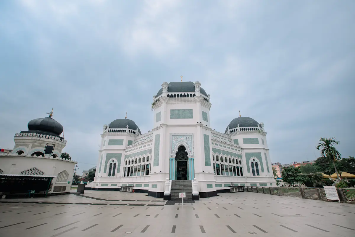 Kamu berada di kawasan yang sejak awal abad ke-20 menjadi pusat kegiatan keagamaan dan kekuasaan Kesultanan Deli. Bangunan di hadapanmu adalah Masjid Raya Al Mashun, masjid utama kesultanan yang hingga kini masih aktif digunakan sebagai tempat ibadah dan menjadi penanda sejarah Kota Medan.